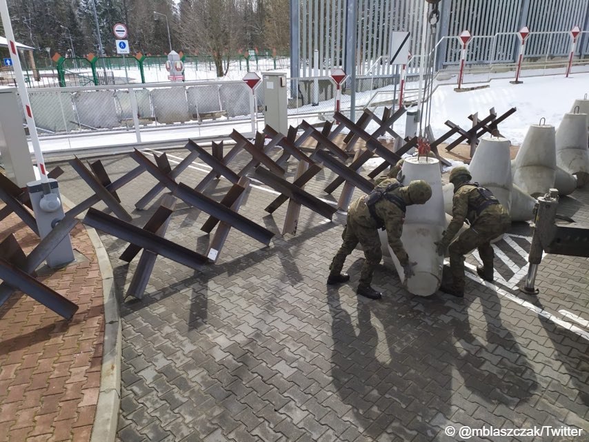 Об установке ежей и укреплении границы сообщил министр обороны Польши Мариуш Блащак 9 марта, он также выложил фото.