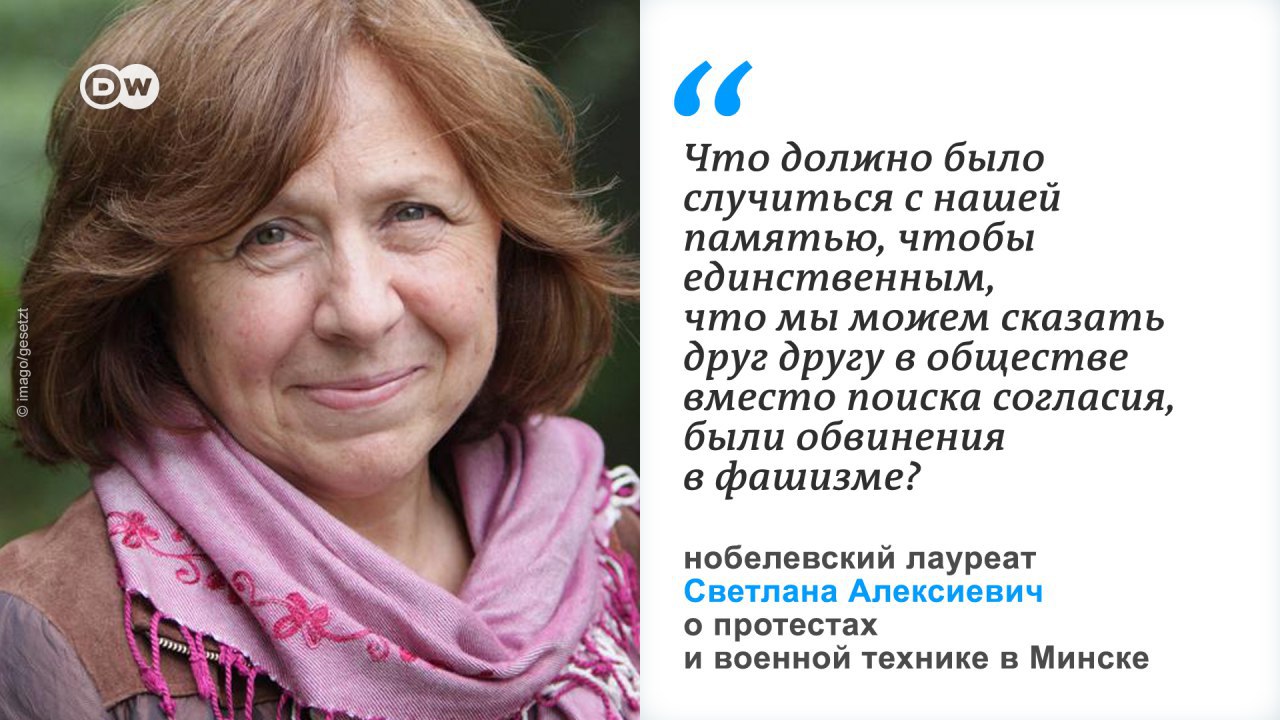 Культуру памяти о Второй мировой войне обсуждали на онлайн-дискуссии "Московские беседы" Германо-российского форума. Нобелевский лауреат Светлана Алексиевич на форуме высказалась о протестах в Минске и о том, что грозит тому, кто хочет узнать и сказать правду о войне.