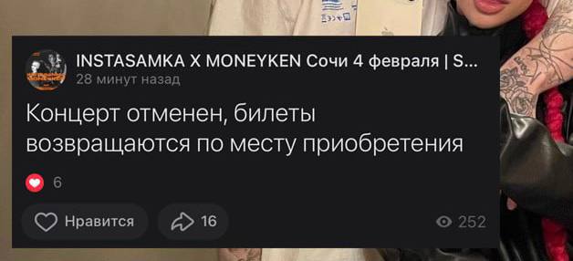 Концерт Инстасамки в Сочи отменен. Как и в Краснодаре, Пятигорске и Курске.
