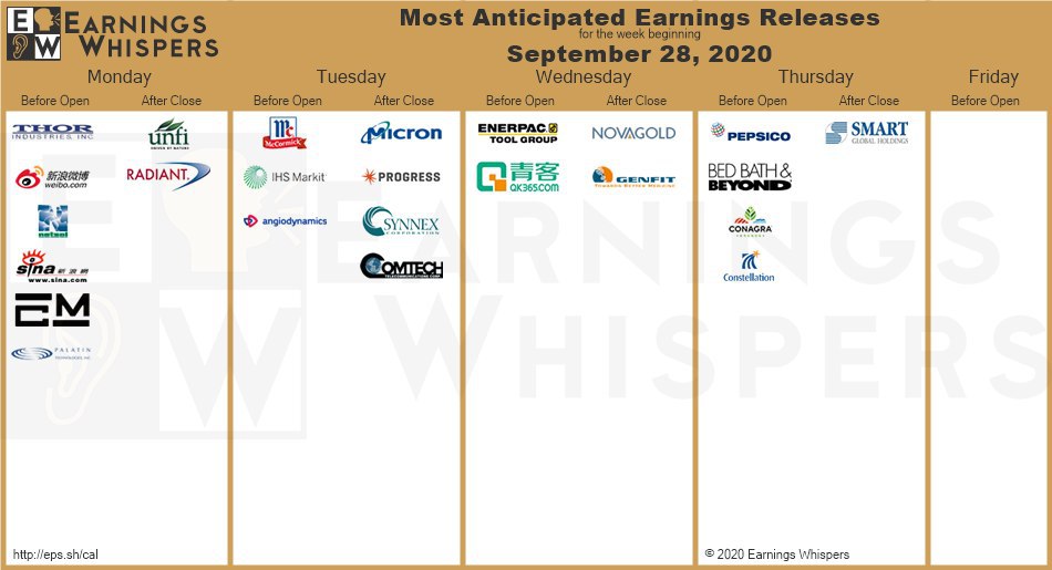 Календарь отчетностей на американском рынке на эту неделю. Отчетов будет очень мало, а уже на следующей неделе начнется сезон отчетностей за третий квартал.
