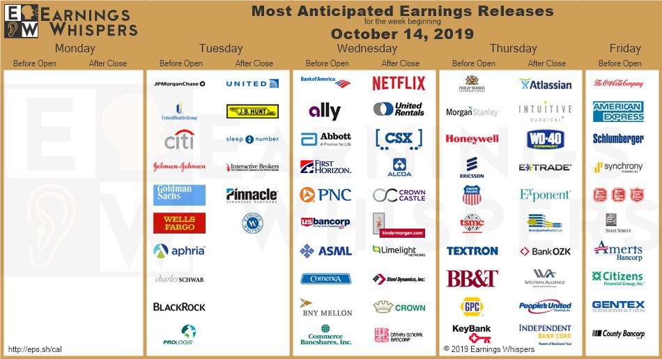 Календарь отчетностей на американском рынке на предстоящую неделю - со вторника стартует сезон отчетностей за 3 квартал, после затишья их будет очень много.