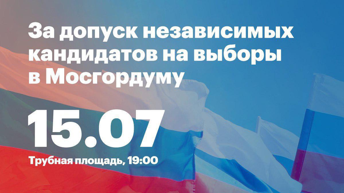 Наш митинг будет 20 июля, но сегодня вы можете поддержать независимых московских кандидатов, выйдя в 19:00 на Трубную площадь. Если вы хотите, чтобы при вашей жизни в России состоялись честные выборы, то выходите на улицы и ничего не бойтесь!