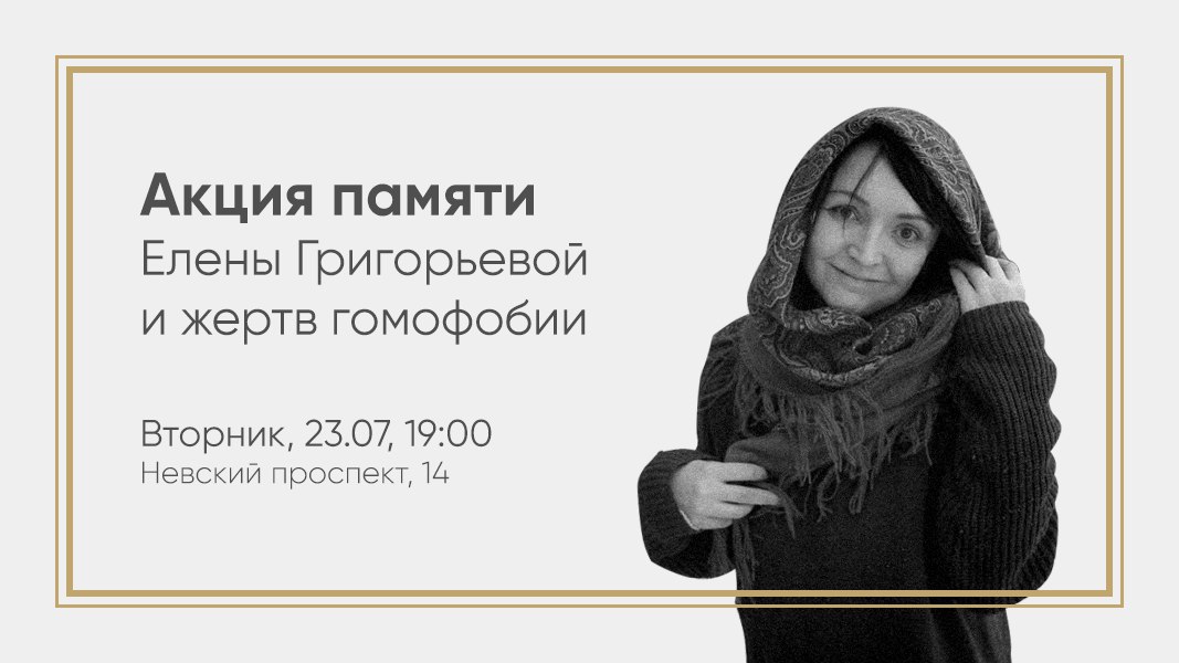 Поэтому сегодня на Невском проспекте рядом с домом 14 состоится акция памяти Елены и других жертв гомофобии в формате сменяемых одиночных пикетов. Мы считаем важным и правильным участие в этом мероприятии.