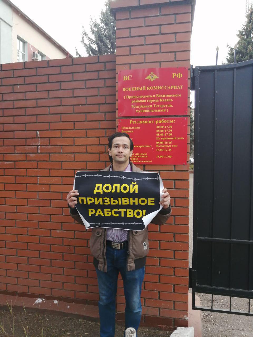 Либертарианец Ильдар Киямов провел сегодня в Татарстане пикет против призывного рабства.