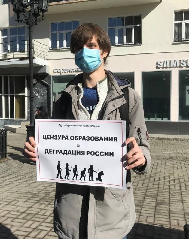 Вчера, 27 марта, активисты Свердловского отделения ЛПР Иван Ксель и Матвей Голованов провели в Екатеринбурге одиночные пикеты против государственного контроля над просветительской деятельностью. Ранее мы сообщали об аналогичных акциях либертарианцев в Хабаровске и Уфе.