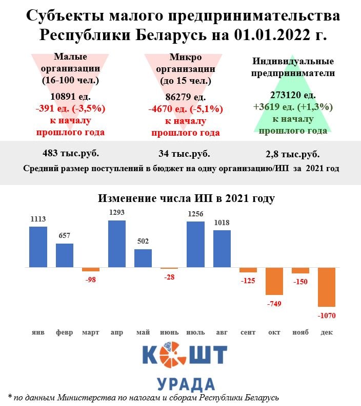В стране стало меньше на 391 малую организацию (в каждой из которых работало от 16 до 100 человек), количество микроорганизаций (в них может быть занято до 15 человек) стало меньше на 4670. Но зато на 3619 единиц прибыло в полку индивидуальных предпринимателей.