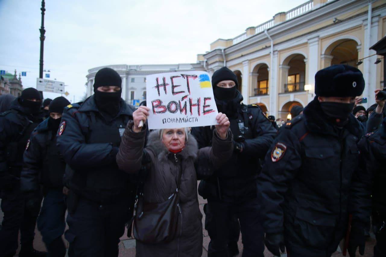 У Гостиного двора снова собрались сторонники мира. Продолжаются задержания. Из новшеств: чтобы заглушить лозунги о мире, полиция включила громко музыку с патриотичными песнями. Например, под песню Любэ "Россия, моя Россия" в полицейскую машину усадили девушку с грудным ребенком.