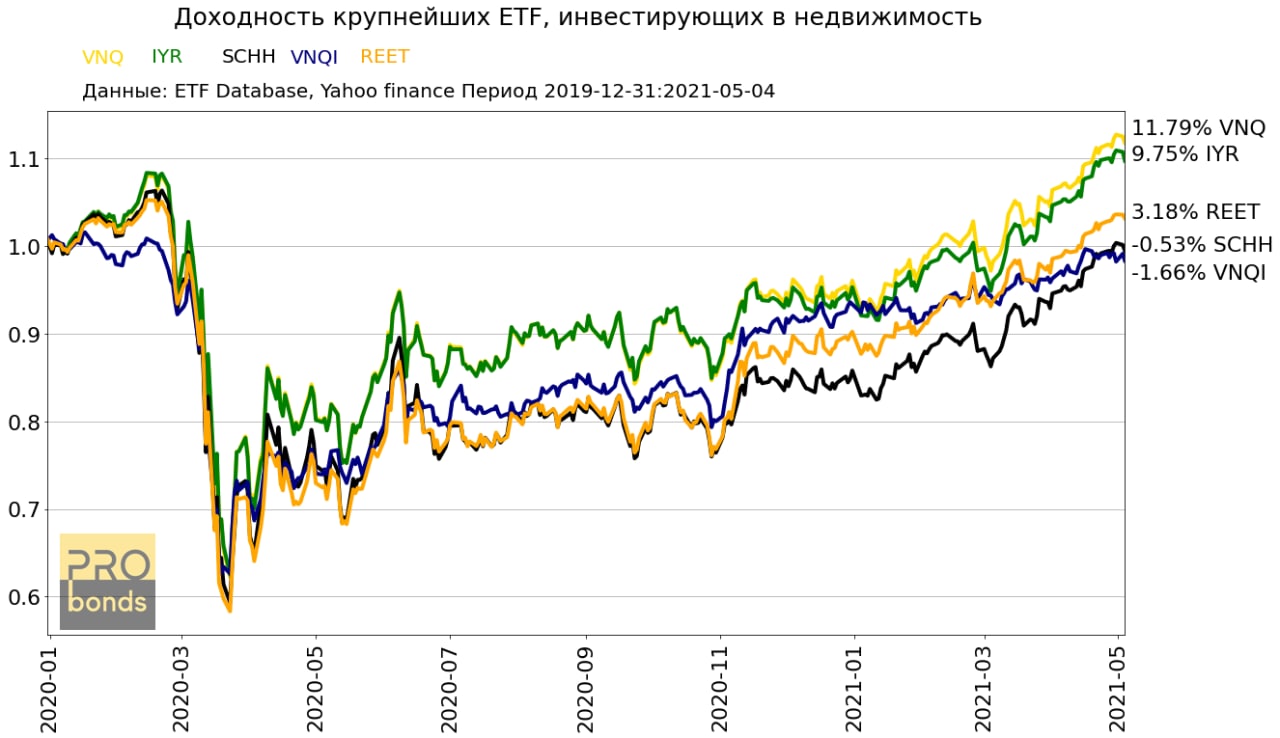 Доходности крупнейших ETF, инвестирующих в недвижимость