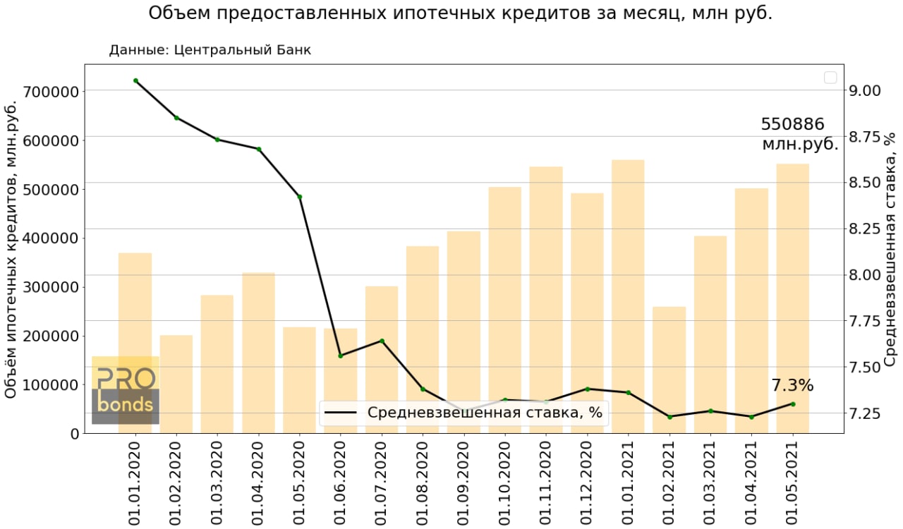 Количество предоставленных кредитов за апрель 191 420 (+7,4% м/м), объем предоставленных кредитов за месяц составил 550 886 млн рублей (+10% м/м)