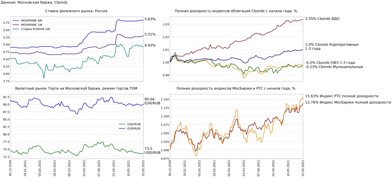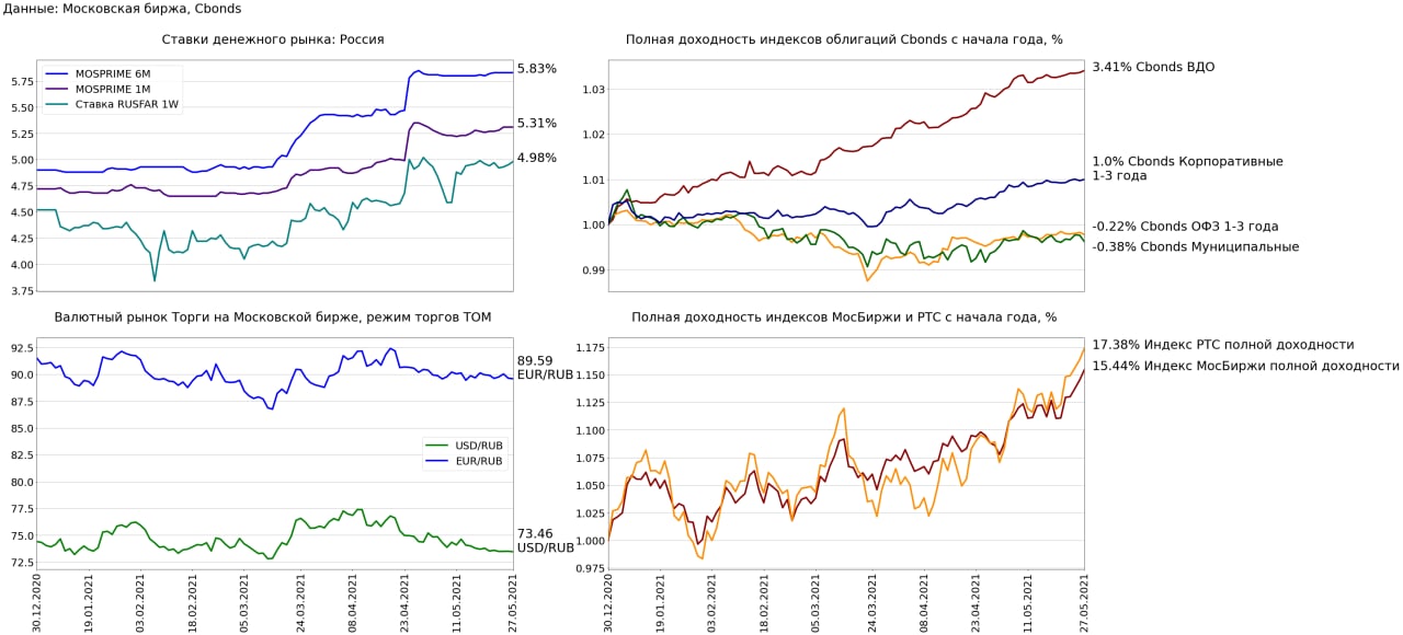 • Ведущий индикатор денежного рынка: 6-месячная ставка MOSPRIME не изменилась, текущее значение 5.83% (+0.0 п.п. н/н, +0.93 п.п. с начала года)