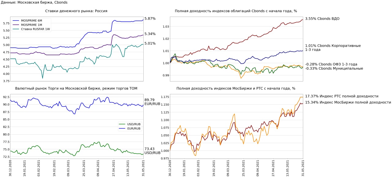 • Ведущий индикатор денежного рынка: 6-месячная ставка MOSPRIME выросла на 0.04 п.п. до 5.87% (+0.04 п.п. н/н, +0.97 п.п. с начала года)