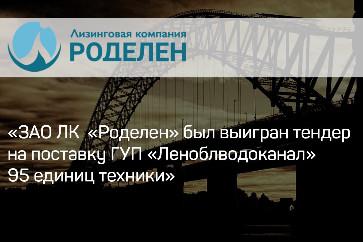 29.12.2018 Лизинговая компания «Роделен» выиграла тендер на поставку ГУП «Леноблводоканал» 95 единиц техники на общую сумму 316 069 774 р., с НДС.