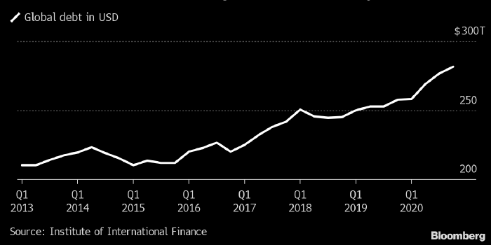 По оценке Института международных финансов (IIF, Вашингтон, США), 281 трлн долл. – общая сумма долга государств, компаний и домохозяйств планеты по итогам 2020 года. Или 355% от мирового ВВП. Это же отношение только для развивающихся стран – 250%. Иными словами, главным заемщиком остается группа развитых стран.