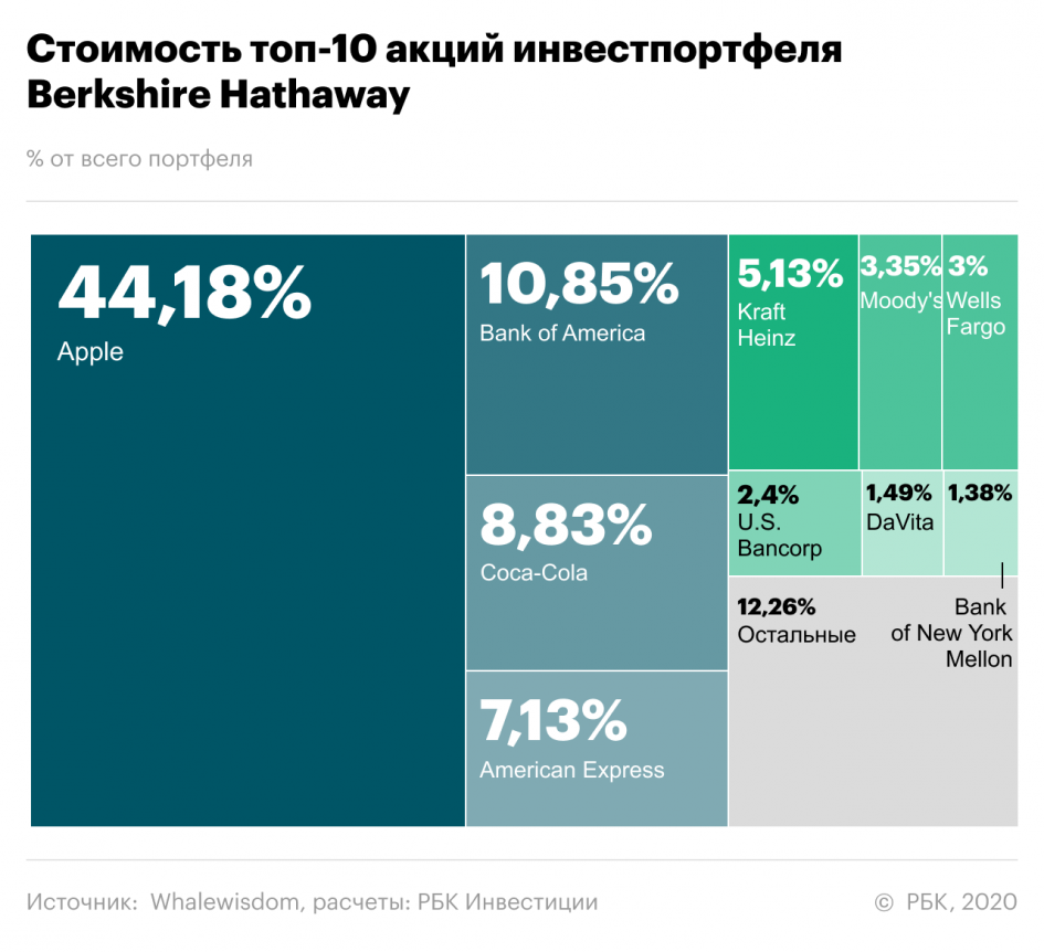 — в каждой компании Berkshire Hathaway купила пакеты в 5%