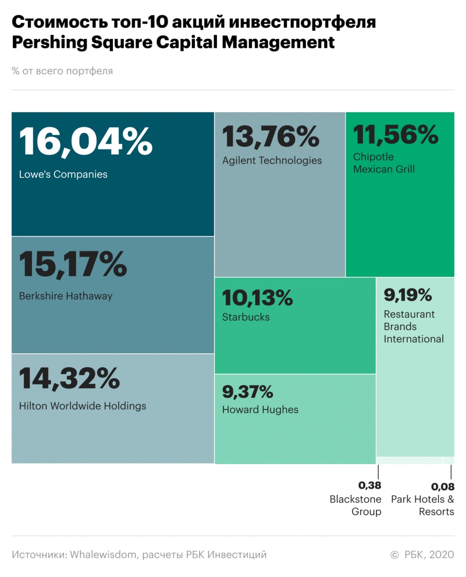 ​​Чистая прибыль фонда «главного сноба» Уолл-стрит — Билла Экмана — с начала года выросла на 62,8%. Миллиардер говорил, что 2020-ый стал лучшим для фонда Pershing Square. Он позитивно настроен на 2021 год, но планирует застраховаться от рисков. А вот что лежало в портфеле Экмана в конце первого квартала👇