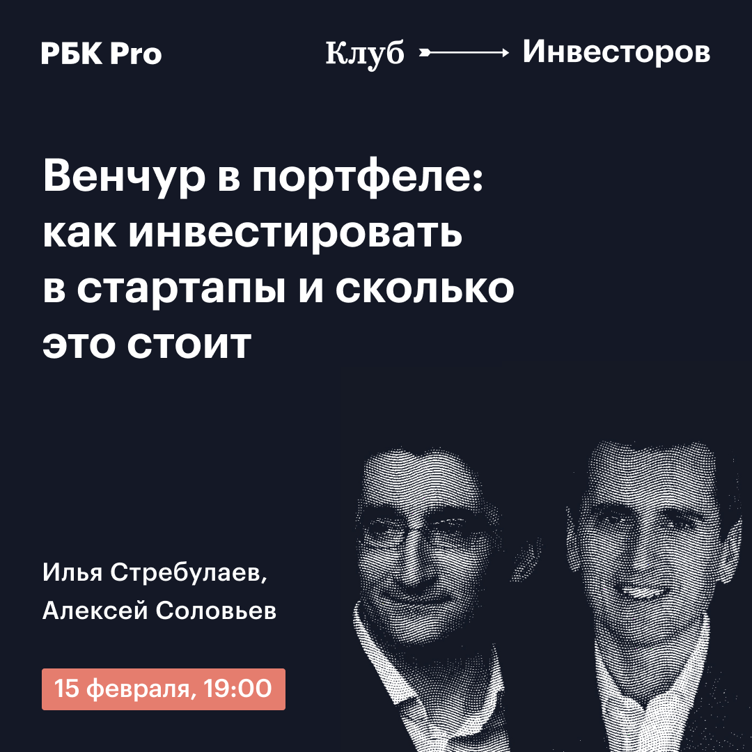 Ближайшая встреча Клуба Инвесторов будет посвящена венчурным инвестициям: как вложиться в стартапы и сколько это стоит? При этом градус экспертности будет зашкаливать — эфир пройдет при участии основателя инвестиционной компании А.Partners Алексея Соловьева и самого профессора Стребулаева.