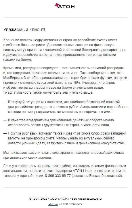 ​​⚡️«Атон» предупредил о рисках хранения валют из-за возможных санкций