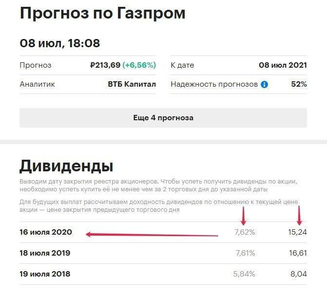 1) Забиваем в поиске «Газпром», переходим по ссылке — перед нами блок «Дивиденды».