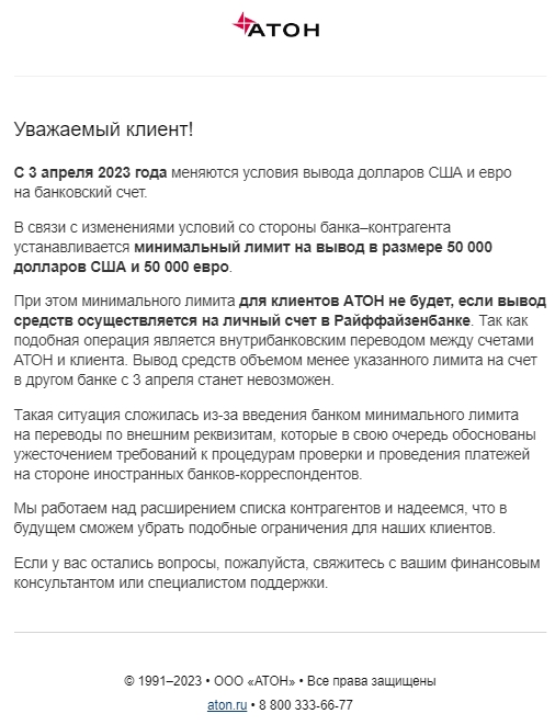​​❗️«Атон» поднимет минимальный порог для вывода валюты в сторонние банки — до $50 тыс.