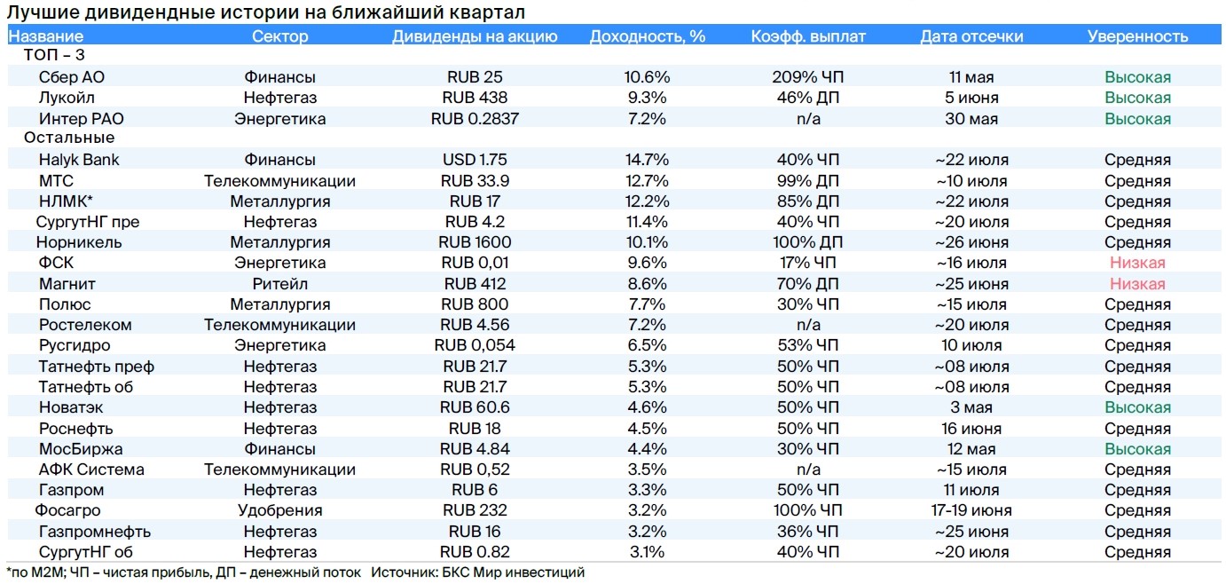 — дивидендная доходность указана с учетом цены закрытия торгов 25 апреля