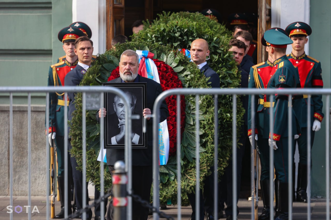Михаил Горбачёв был похоронен на Новодевичьем кладбище Москвы рядом с супругой Раисой Максимовной. Впереди гроба с портретом Горбачёва шел главный редактор «Новой газеты» и нобелевский лауреат Дмитрий Муратов (на фото).