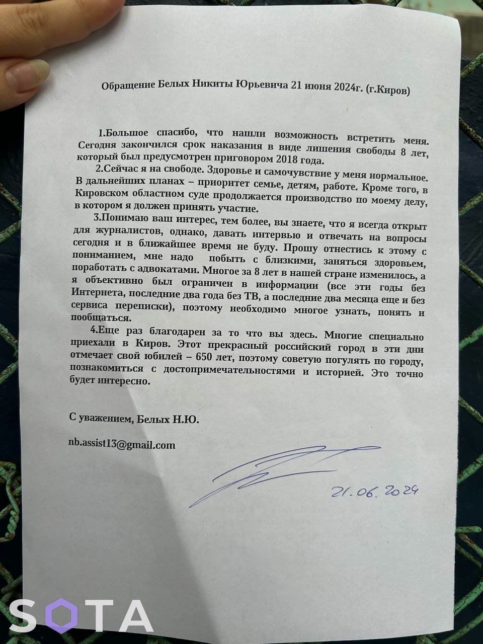 В то время, как всех сажают, бывший губернатор Кировской области Никита Белых пошёл против течения и вышел на свободу из колонии, где провёл 8 долгих лет по делу о взятке. Вины он не признал. Последние годы Белых был почти отрезан от доступа к новостям, и сейчас ему предстоит узнавать многое.