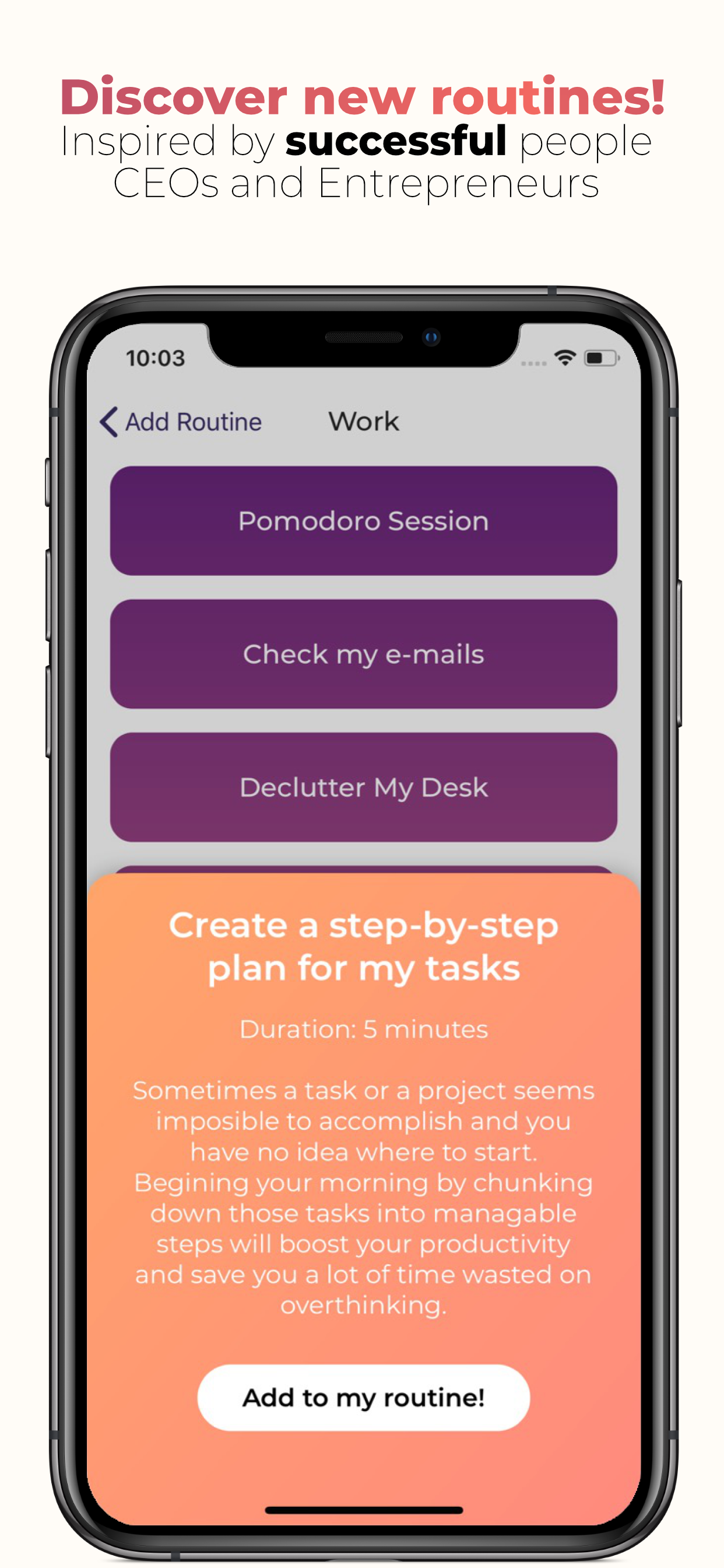 Основное преимущество состоит в том, что вы не просто можете прописать утреннюю или вечернюю рутину, а установить время начала и продолжительность выполнения задания. Таким образом вы стимулируете себя выполнить всю работу за определенный период времени и четко знает, когда это закончится. Потому и вероятность выполнения задания вырастает.