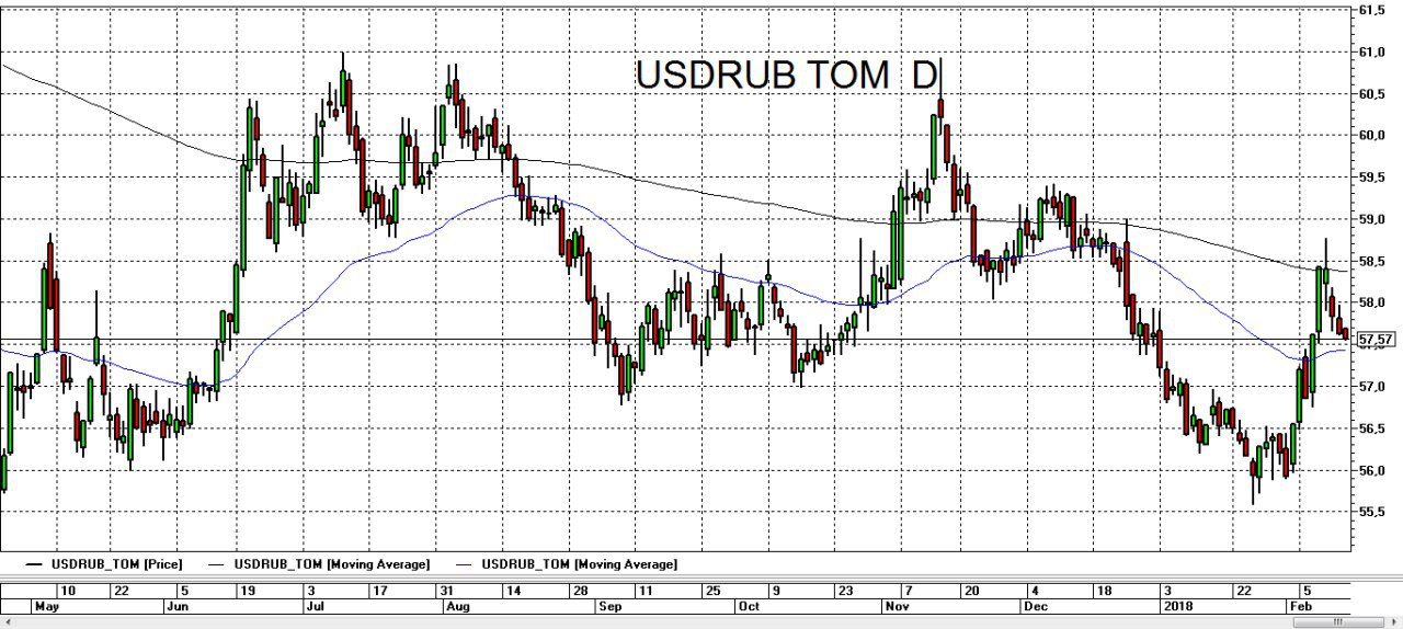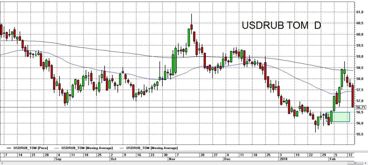 ТЕКУЩИЙ МОМЕНТ. USDRUB с технической точки зрения оттолкунулся от скользящей средней EMA200 вниз. Основная поддержка 56.50. Вероятен сценарий обновления минимумов. Держателям USD логично захеджировать свои позиции.