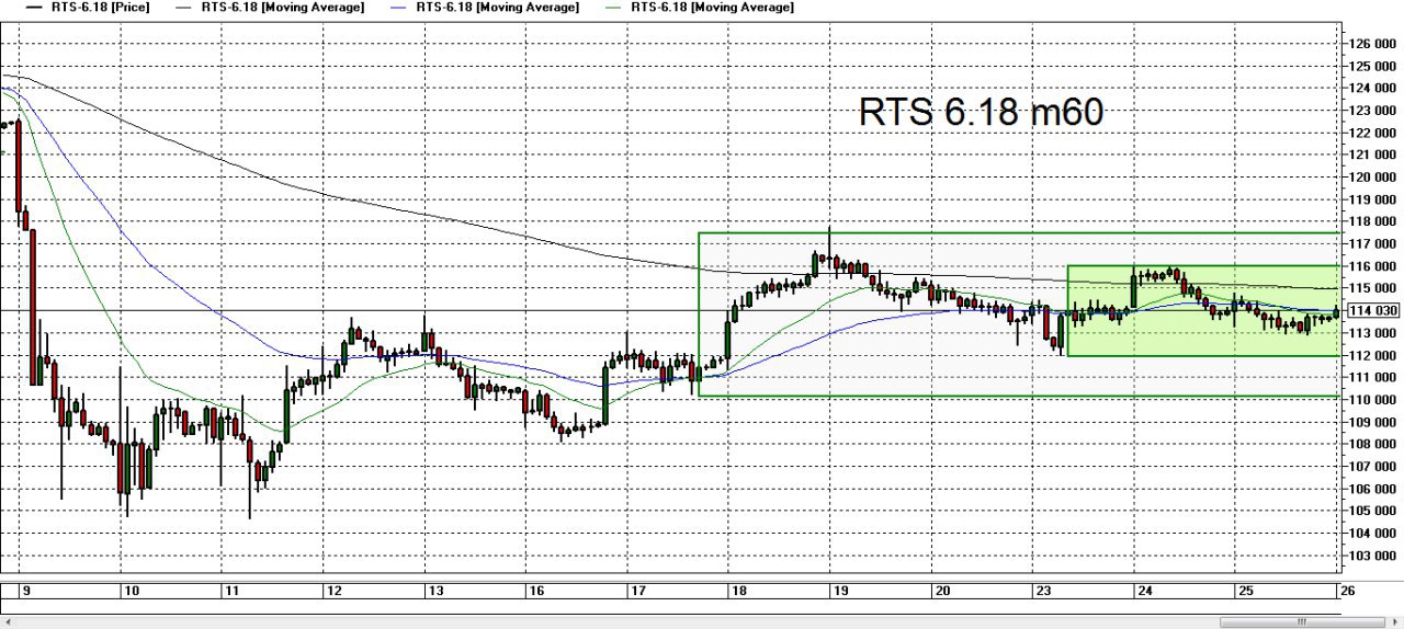 ​​ТЕКУЩИЙ МОМЕНТ. RTS-6.18. Фьючерс на индекс РТС торгуется в сужающемся диапазоне. На наш взгляд проторговка диапазонов 110000 - 117000 и 112000 - 116000 не закончена. В этих условиях логично принимать решение о сделках по разворотным паттернам от наметившихся локальных границ диапазонов внутри торговой сессии. Ближайшая спекулятивная поддержка находится на уровне 113000, сопротивление - на 116000 . #фьючерсы #трейдинг #RTS. Торгуйте вместе с нами: https://o-n-i-s.ru/torghuiem_vmiestie