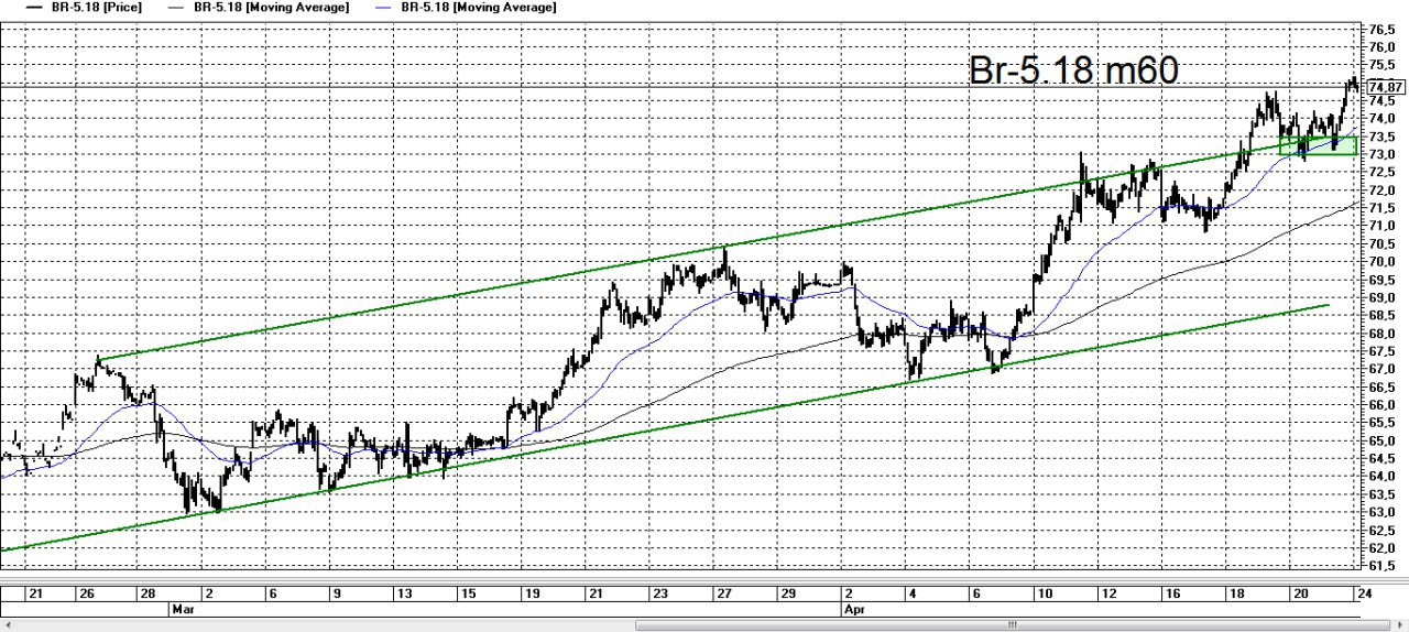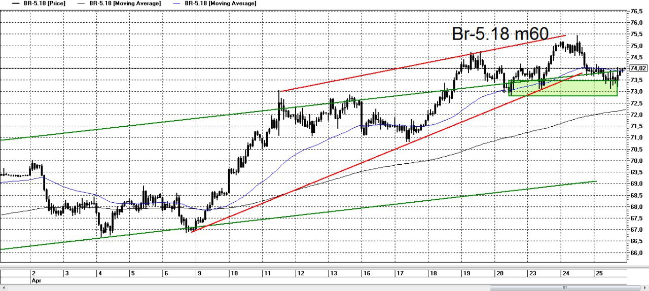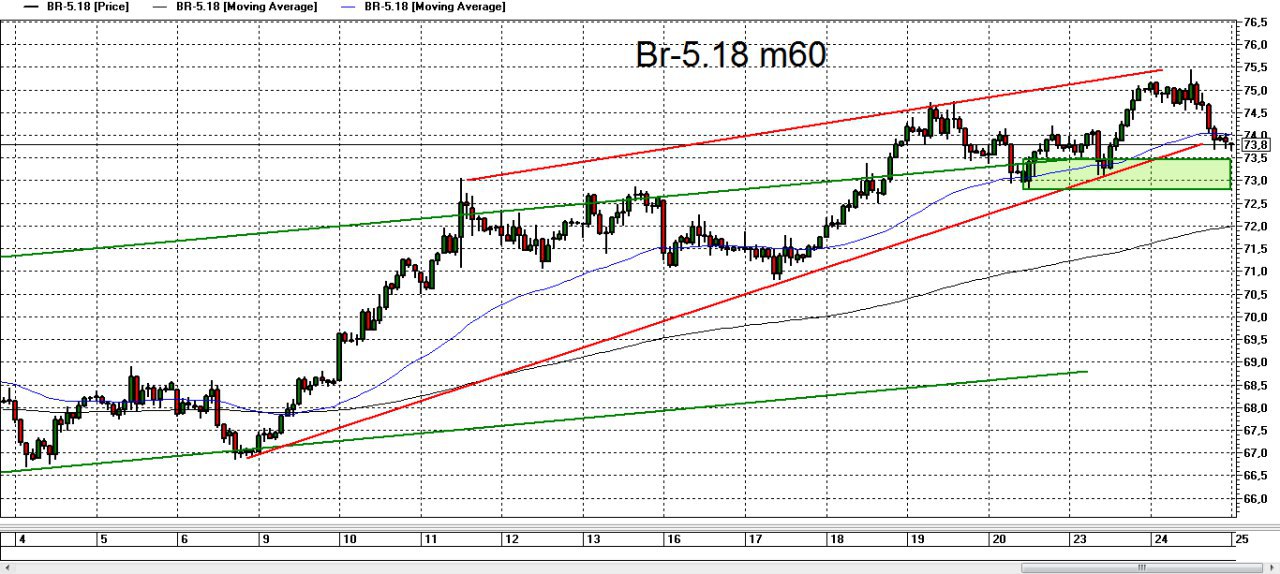 ​​ТЕКУЩИЙ МОМЕНТ. BR-5.18. Фьючерс на нефть сорта Брент оттолкнулся от своей поддержки на уровне 73.00 и начал движение вверх. Открытие сегодня будет выше. Данный факт пока не умоляет сценария с КДТ и разворотом вниз, даже в случае обновления максимума, но пересиживать в коротких позициях "перехай" не стоит. Для "быков" сегодня , как и вчера основная поддержка расположена на уровне 73,00, если она устоит, то вполне возможно установление нового максимума. Основное сопротивление находится на локальном максимуме 75,45 . #фьючерсы #трейдинг #брент. Торгуйте вместе с нами: https://o-n-i-s.ru/torghuiem_vmiestie