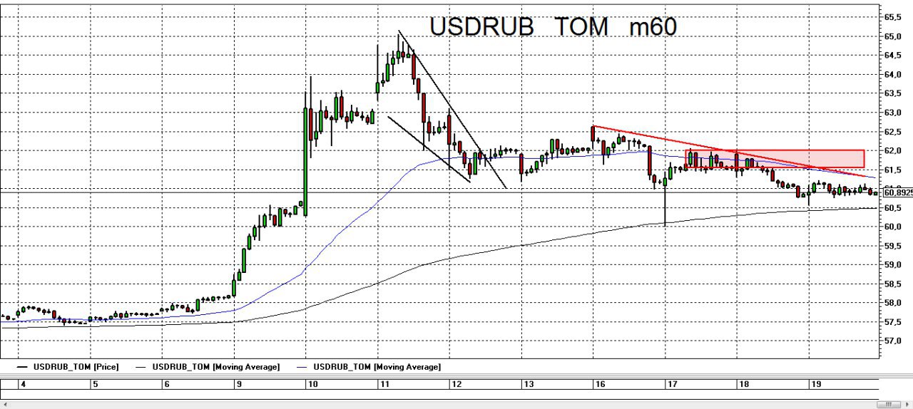 ​​ТЕКУЩИЙ МОМЕНТ. USDRUB. Валютная пара USDRUB сформировала сопротивление на уровне 62 рубля за доллар США и торгуется ниже данного сопротивления. Пока по инструменту складывается "медвежья" ситуация. #трейдинг #валюта #доллар. Торгуйте вместе с нами: https://o-n-i-s.ru/torghuiem_vmiestie