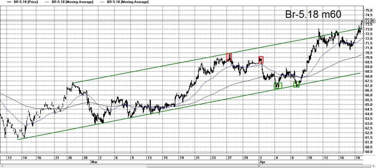 ​​ТЕКУЩИЙ МОМЕНТ. BR-5.18. Фьючерс на нефть сорта Брент преодолел предыдущий максимум, сформированный у отметки 73 и заодно восходящий ценовой канал. С одной стороны это может означать выход в новый ценовой диапазон. Но с другой стороны мы знаем, что часто происходит, так называемй "ложный пробой" ценовых каналов, который в итоге приводит цену к противоположной границе такого канала, а зачастую и пробитию его нижней границе. По нашему мнению текущая ситуация приведет цену Брент, как минимум к нижней границе данного ценового канала. Но для принятия решения необходимо увидеть разворотную модель, либо подождать пока начнет складываться понижательное движение. #фьючерсы #трейдинг #брент. Торгуйте вместе с нами: https://o-n-i-s.ru/torghuiem_vmiestie