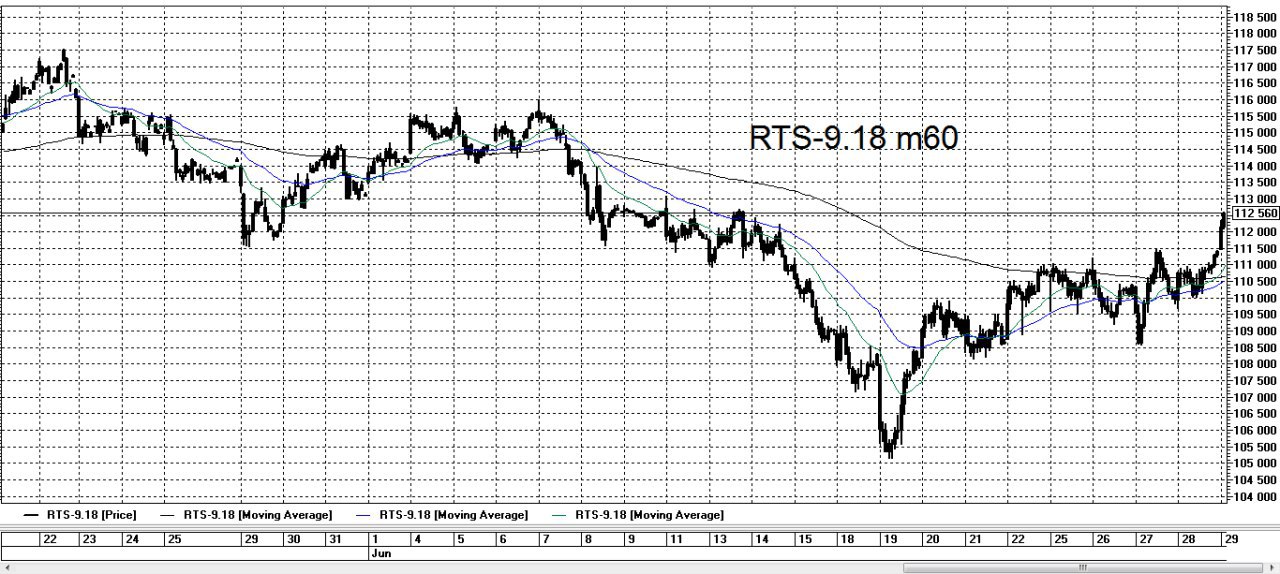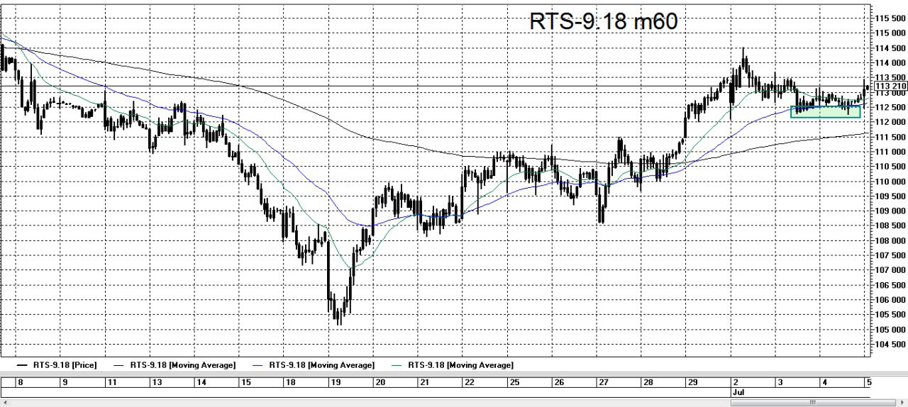 Фьючерс на индекс РТС на сегодняшний день сформировал поддержку на уровне 112000. Исходя из данного факта пока можно сделать предположение, что у участников рынка есть стремление преодолеть предыдущий максимум на уровне 114500. Но есть еще один момент: традиционное снижение активности в летние месяцы, в свою очередь это не означает отсутствия движения на рынке вообще. Соответственно свою тактику на ближайшие торговые сессии можно построить на сделках от границ диапазона 112000 - 114500. Мы анализируем текущую ситуацию не с целью предсказать будущее. Наш анализ носит исключительно прикладной характер, целью которого является поиск ситуации удобной для открытия сделки для извлечения прибыли из волатильности рыночных инструментов.
