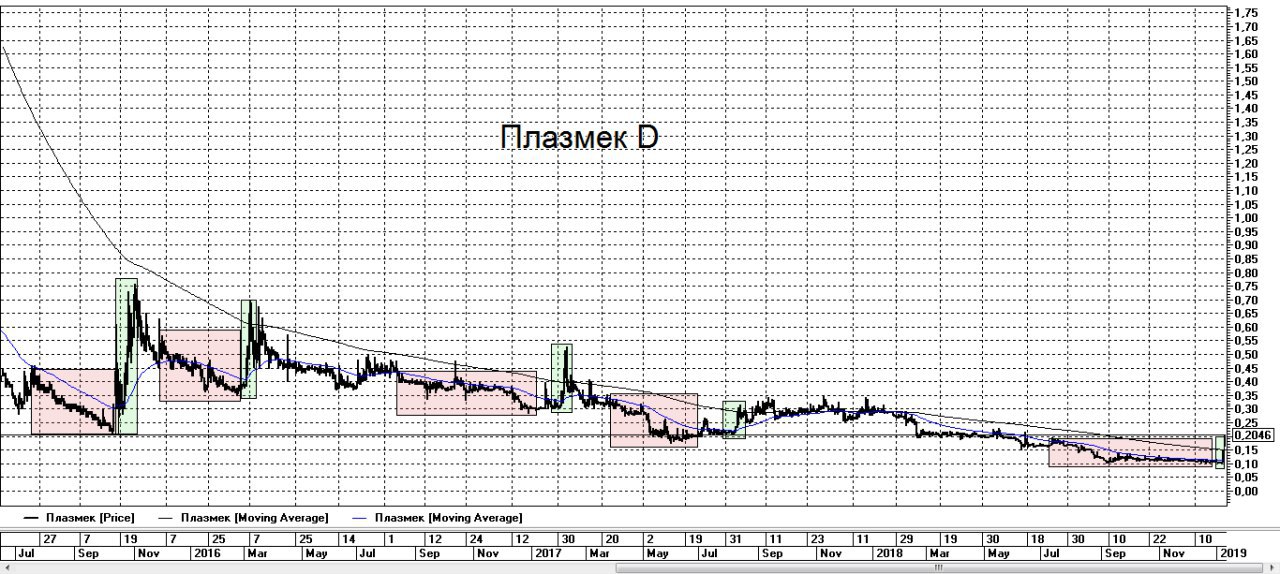 Не секрет, что есть спекулянты, специализирующиеся на акциях компаний третьего эшелона, так называемом “неликвиде”. Причины этого кроются в большом потенциале движения. На наш взгляд такие инвестиции достаточно рискованны. Но краткосрочные спекулятивные операции вполне допустимы. Сегодня обратим внимание на акции “Плазмек”, которые прибавляют за сегодняшнюю сессию 34%, а от своих минимальных значений, сформированных с осени 2018 года по январь текущего - почти 100%. Нонсенс? Наверное нет. Если посмотреть на ничем непримечательный график этой акции, то такие моменты, можно увидеть несколько раз за последние три года. Несколько раз по 100% роста….. Честно говоря мы никогда не покупали акции Плазмек, но регулярно на протяжении нескольких лет покупали похожие по своей структуре движения акции другой компании (не забывая их продавать), поэтому имеем представление о чем говорим. На наш взгляд, такой подход к инвестированию вполне приемлем и ничем не уступает никакому другому, но здесь есть своя специфика и свои риски, одним из самых главных рисков считаем возможный делистинг. В дальнейших публикациях расскажем как, по каким принципам и с какими акциями мы проводили такие операции.
