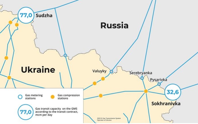 Российский природный газ в последнее время шел через Украину по двум направлениям - через газоизмерительные станции "Сохрановка" и "Суджа".