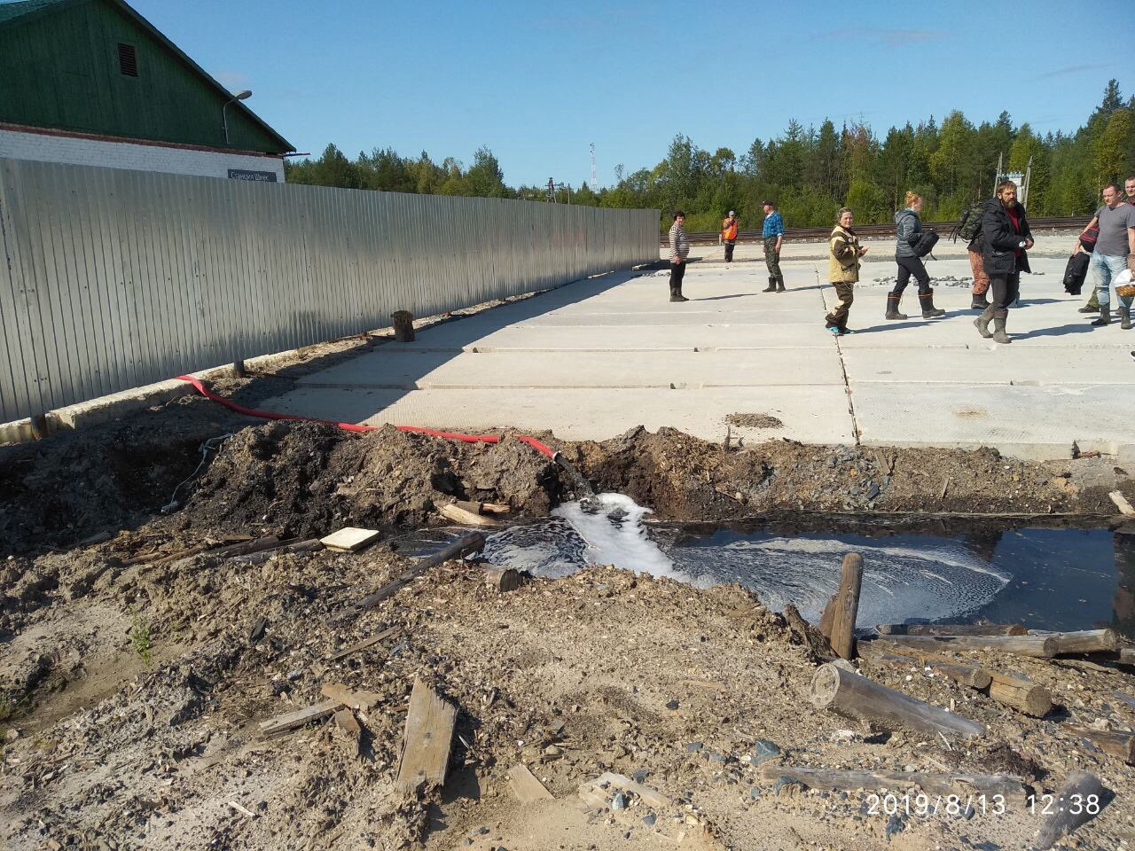На станции Шиес, где, по мнению экспертов областного правительства и ООО «Технопарк», нет болот, после проливных дождей производится откачка воды с неприятным запахом из подвала здания, не являющегося капитальным строением (по заверениям ООО «Технопарк»).