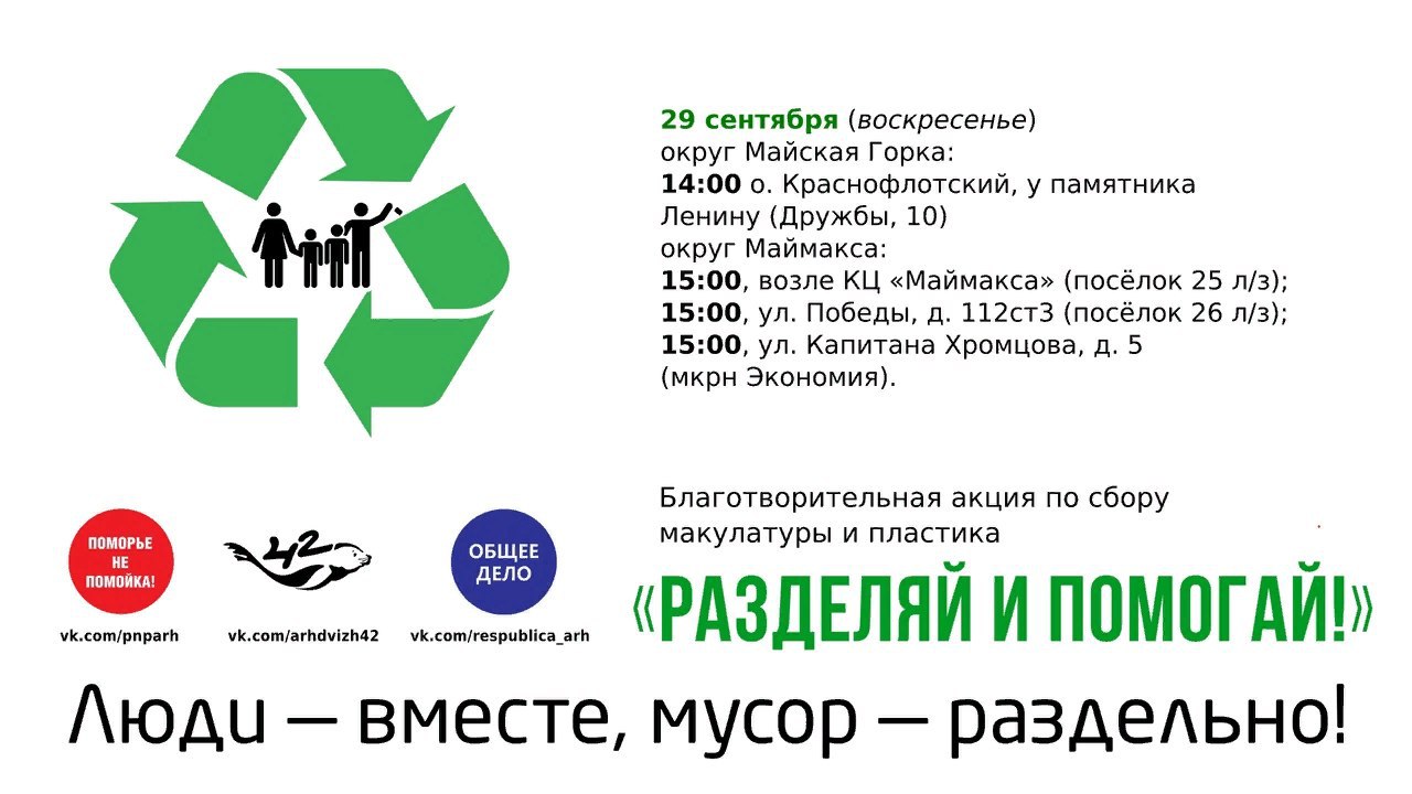 ​​Уже более 6 месяцев по выходным активисты в Архангельске проводят акции по раздельному сбору отходов (РСО). На них жители города могут получить информацию о пользе РСО, о необходимости нового подхода к решению «мусорного вопроса», а также сдать отсортированный мусор, средства от реализации которого пойдут на благотворительность.