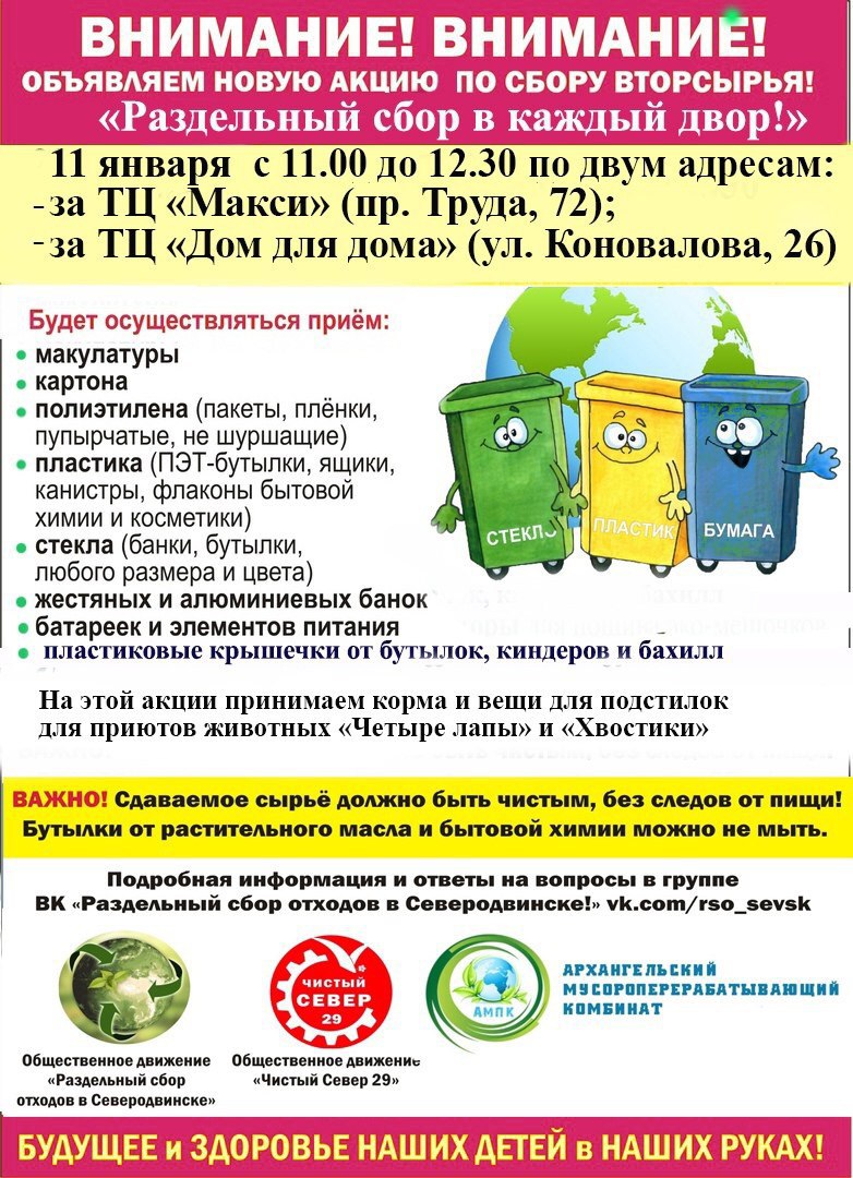 Завтра, 11 января, в Северодвинске пройдёт сразу две акции по раздельному сбору отходов: