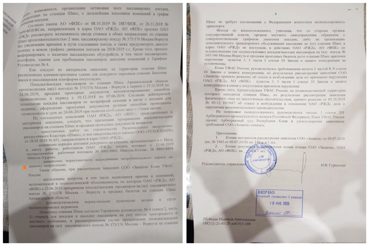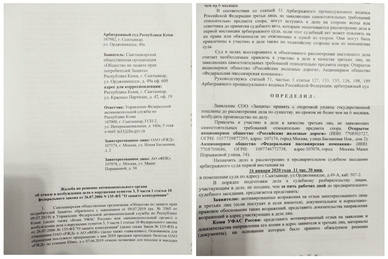Ранее была подана жалоба в УФАС по этому вопросу, но они ее отклонили, так как сочли, что нарушений в действиях РЖД нет. В связи с этим активисты Гражданского Общества Республики Коми обратились в арбитражный суд.