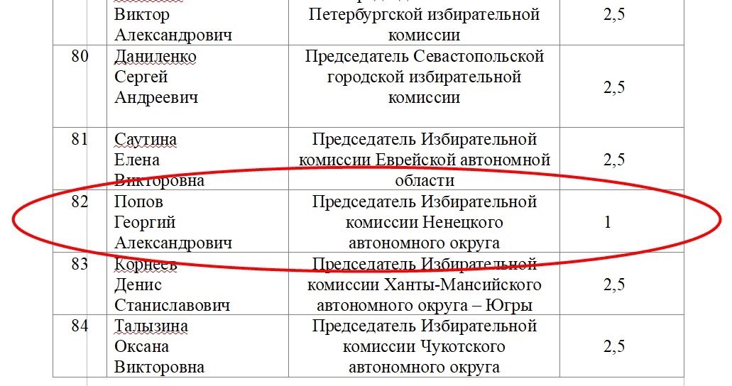 Соответствующее постановление издано 8 июля. Подавляющее большинство председателей региональных избирательных комиссий получили коэффициент 2,5, но счастье улыбнулось не всем: председатель избиркома Ненецкого АО Георгий Попов получил коэффициент 1, а его коллега в Архангельской области Андрей Контиевский — 2.