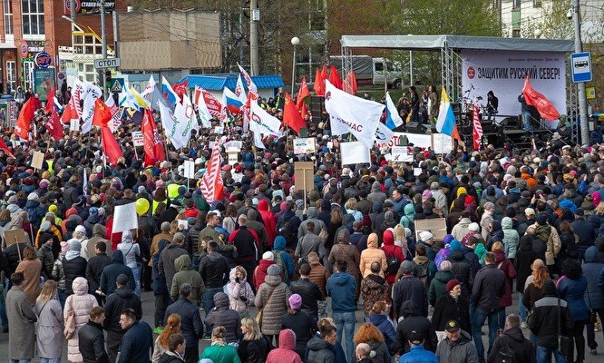 Многие обратили внимание, что митинг 19 мая в Архангельске собрал больше полиции, чем было на демонстрации 7 апреля. Несмотря на то, что недавнее мероприятие было согласовано, у полиции были средства для разгона людей — от бойцов специальных подразделений до военизированных автомобилей, оснащённых водомётами. Такой техники ранее в областной столице никто не замечал.