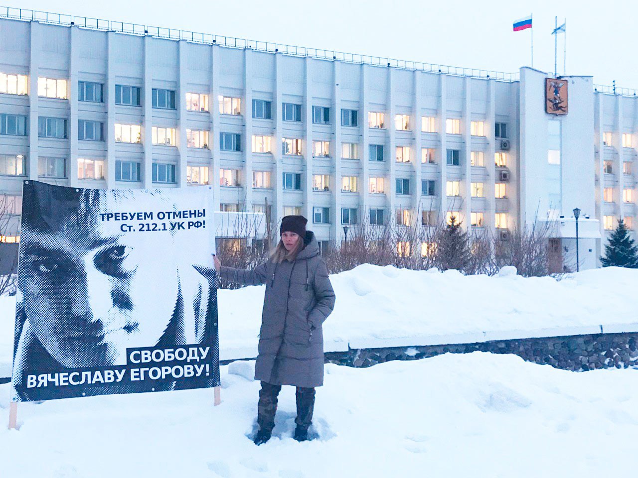 На фото: одиночный пикет в защиту Вячеслава Егорова в Архангельске 13.02.2019.