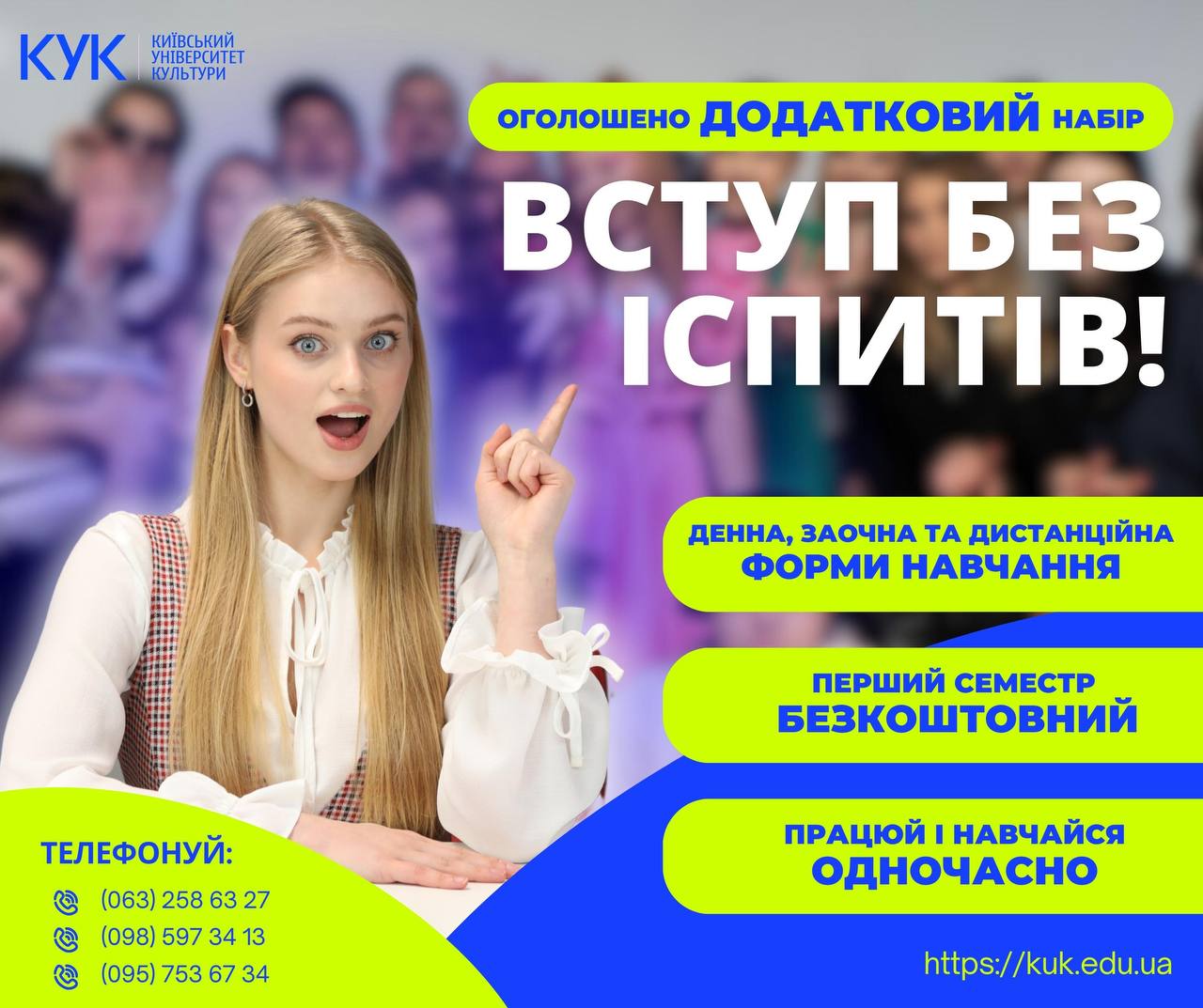⭐️ Київський університет культури оголошує ДОДАТКОВИЙ НАБІР – на усі спеціальності! Вступ за 2 години!