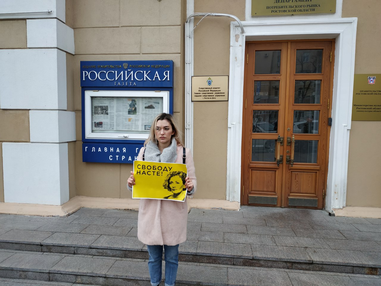 Коллеги Насти в Ростове-на-Дону поддержали ее пикетом у здания СК.